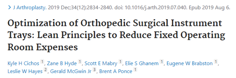 Conclusion: In addition to substantial cost savings, tray optimization decreases tray weights and cleaning times without negatively impacting turnover times. Lean methodology improves efficiency in instrument tray usage, and reduces hospital cost while encouraging surgeon and staff participation through continuous process improvement.
